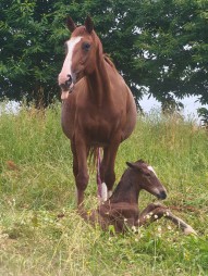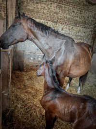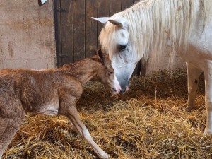 Narceja et Sardao nous ont fait un superbe poulain crème aux yeux bleus ( Feufolet)
